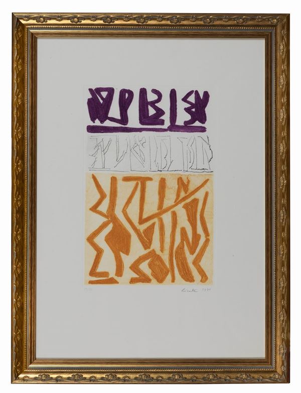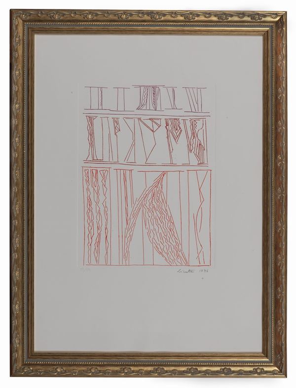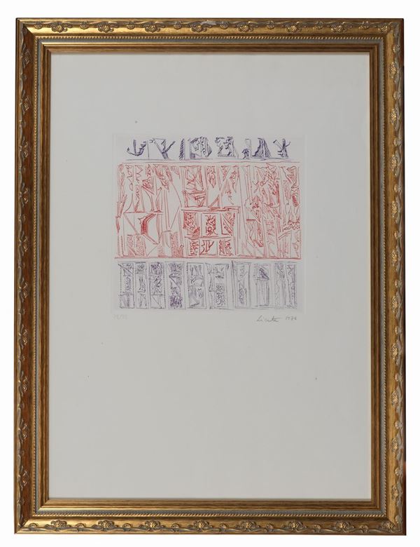 Firmate e datate 1976. "Soggetti astratti" lotto di tre litografie a colori multipli 79/99. Misura massima cm 45 x 29