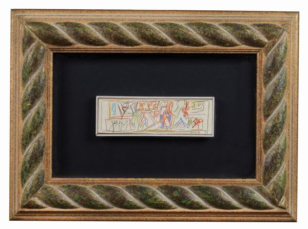 Firmato e datato 1973. "Senza Titolo" pastello su carta cm 7 x 20