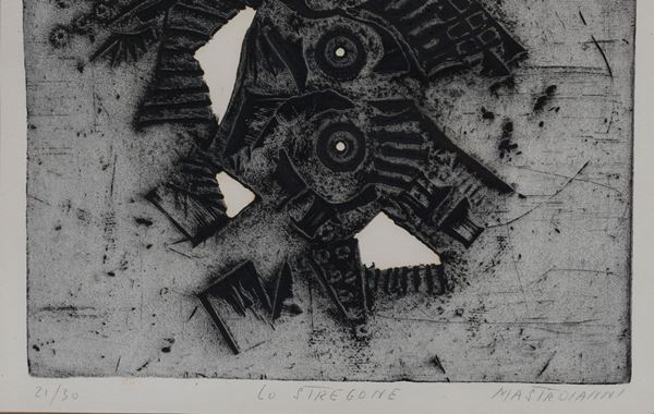 Firmata. "Lo stregone" litografia su carta multiplo 21/30 cm 50 x 40