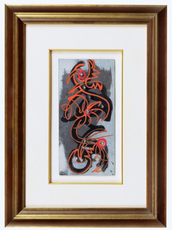 Firmato. "Composizione" tecnica mista cm 25 x 12