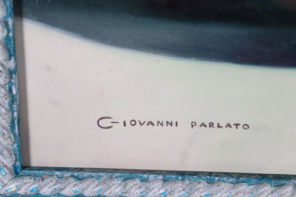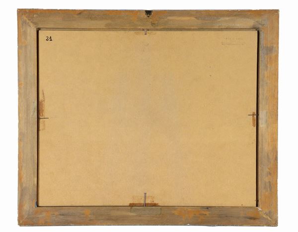 Firmato. "Natura morta con cartoccio di fichi" olio su compensato cm 40 x 50
