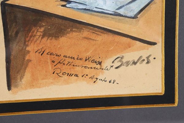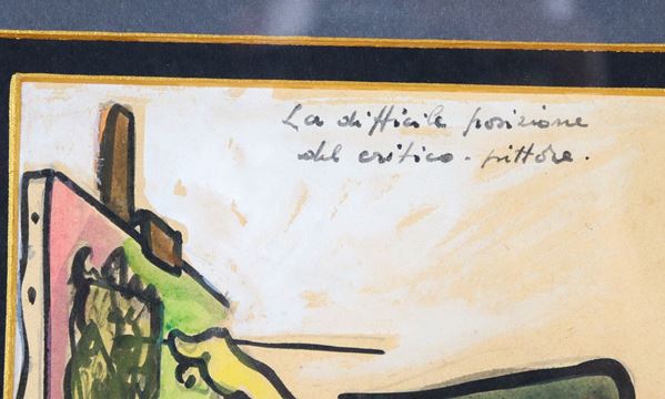 Firmato e datato 1948. "La difficile posizione del critico pittore" tecnica mista su carta cm 25 x 30