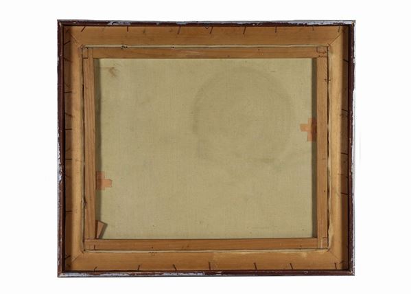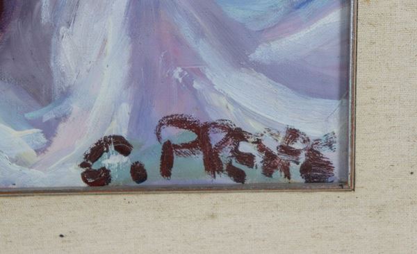 Firmato. "Natura morta con vasellame, bottiglie e cipolle" tecnica mista su tela cm 50 x 60