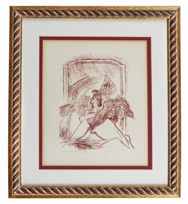 "Arpia allo specchio" litografia firmata cm 34 x 29