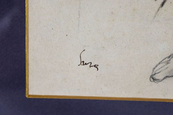 Firmato. "Nudo di ragazza con sedia" disegno a matita e carboncino su carta cm 38 x 28