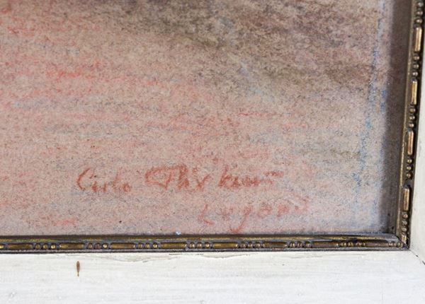 Firmato ed iscritto Lugano. "La passeggiata dei preti" pastello su cartone cm 78 x 53