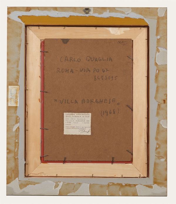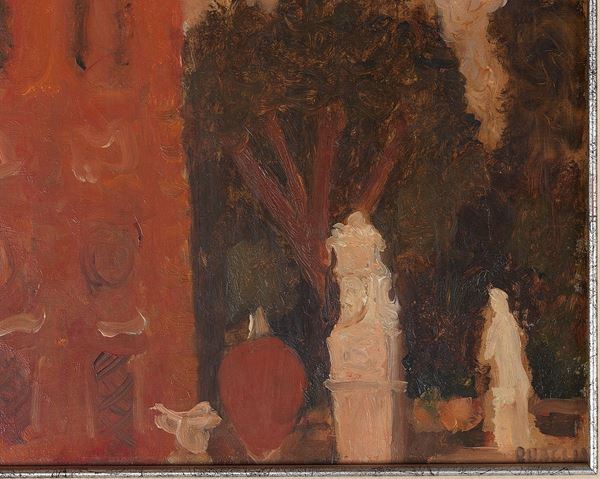 Firmato. "Villa Borghese" olio su masonite cm 35 x 25