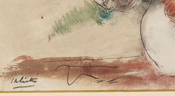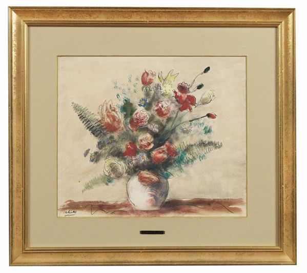 Firmato. "Vaso di fiori" tecnica mista su carta cm 30 x 35