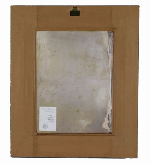 sul retro etichetta con autentica firmata dall'autore 1972, cornice in legno decorato.