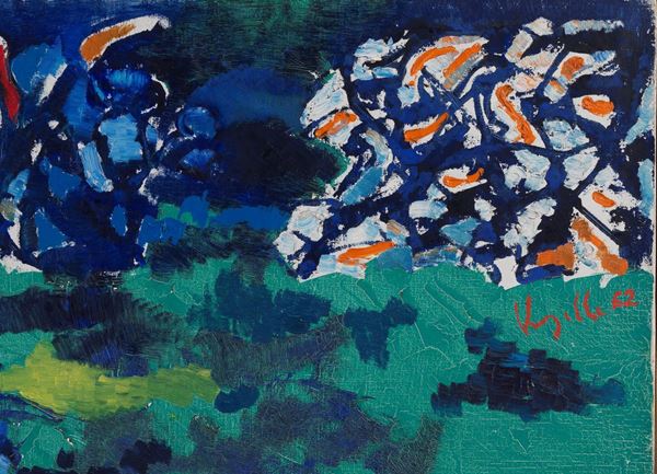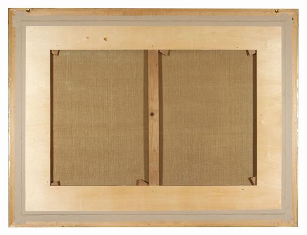 Firmato e datato 1962. "Composizione" olio su tela cm 90 x 130