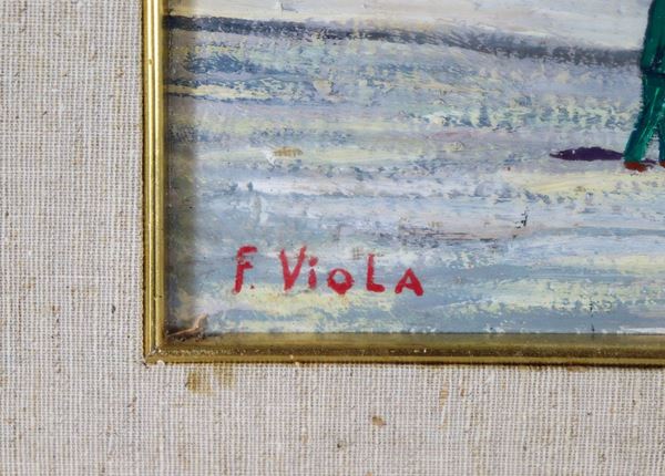 Firmato. "Scorcio di vie di Roma" olio su cartone cm 47 x 57