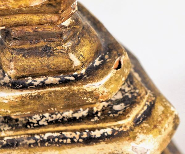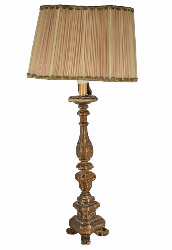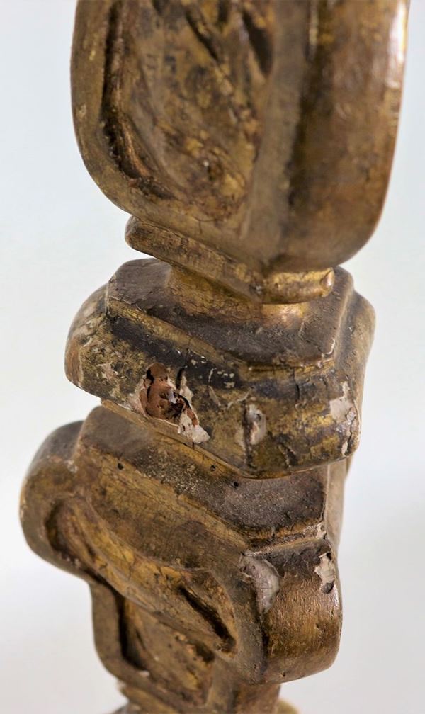 Antico torciere da tavolo in legno dorato ed intagliato a motivi Luigi XIV
