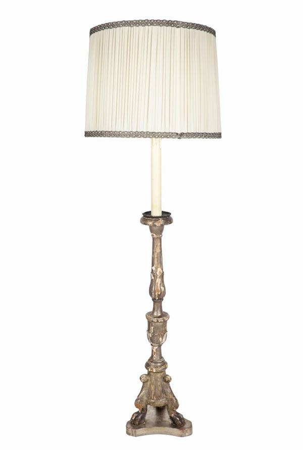 Antico torciere da terra in legno dorato ed intagliato a motivi Luigi XIV
