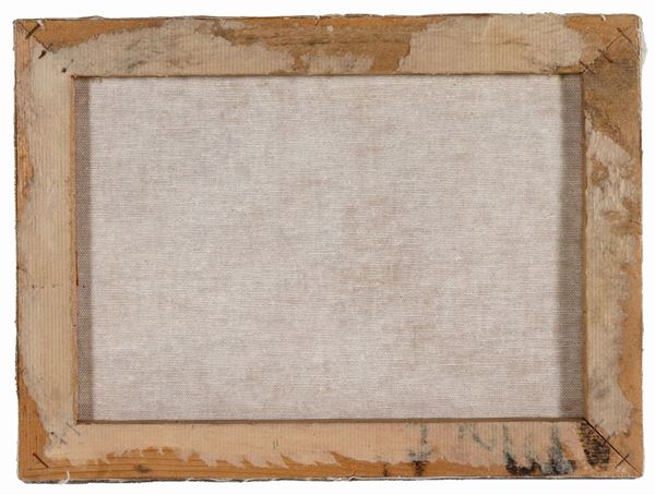 "Composizione", tempera e china su carta applicata a tela. La tempera reca la firma Sironi (?)