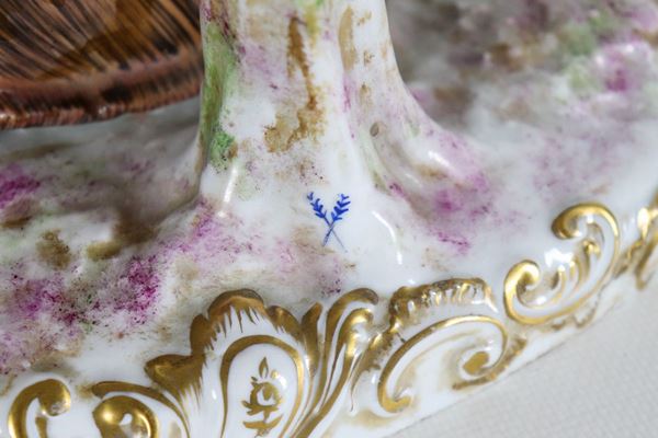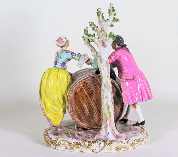 "La riparazione della grande tinozza", gruppo in porcellana policroma di Parigi, lievi mancanze