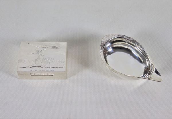 Lotto in argento di una scatolina e una tazza assaggiavino (2 pz.), gr. 180