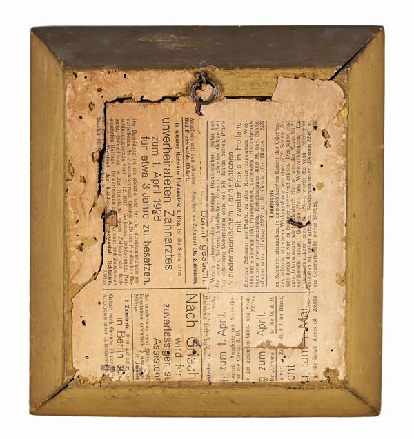 antica cornice in legno dorato dell'epoca che presenta mancanze, cm 11 x 14.