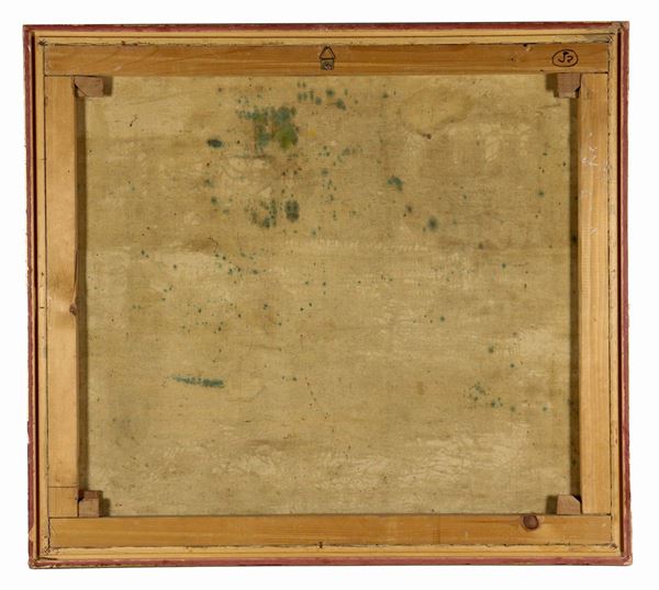 "Case con canale e barche di pescatori", dipinto ad olio su tela