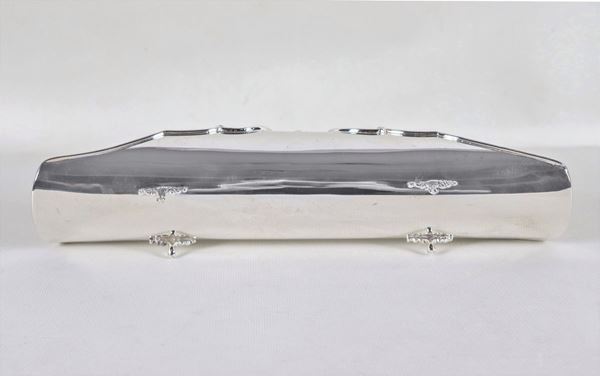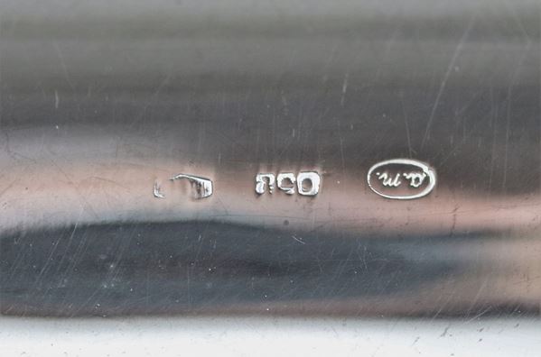 Portagrissini in argento cesellato e sbalzato, sorretto da quattro piedini ricurvi, gr. 280