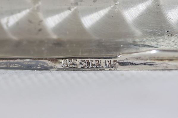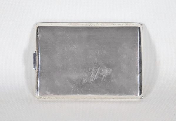 Portasigarette in argento Sterling 925, sul coperchio medaglione cesellato, gr. 110