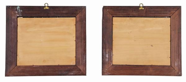 cornici in legno di noce, cm 21 x 25 ciascuno.