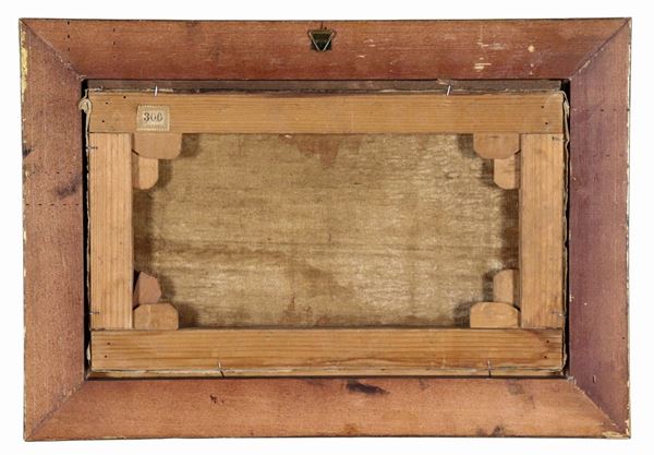 cornice in legno dorato e laccato nero, cm 20 x 32.