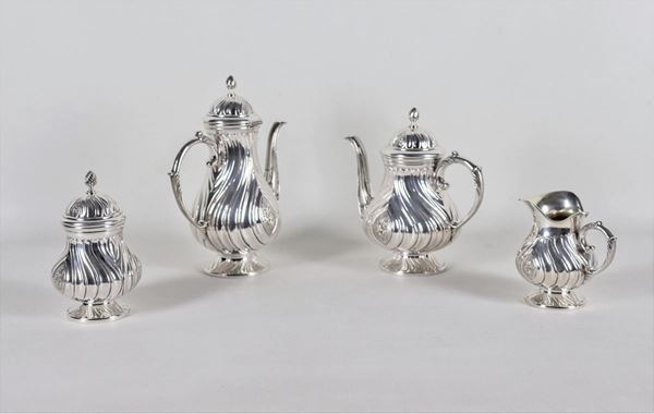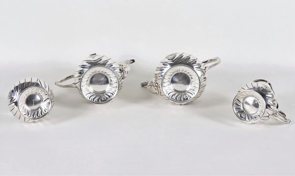 Servizio da tè e caffè in argento cesellato e sbalzato a torchon (4 pz), gr. 1930