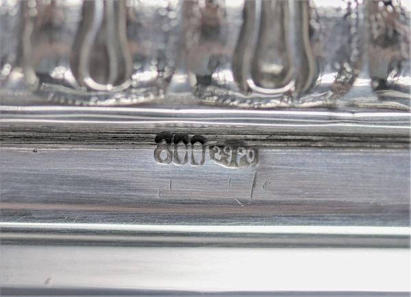 Vassoio rettangolare in argento a due manici, con bordo cesellato e sbalzato a motivi di palmette Impero, gr. 1770