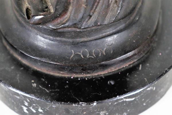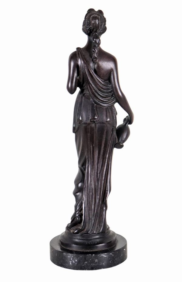 "Vestale con brocca", scultura in bronzo sorretta da base in marmo nero. Firmata