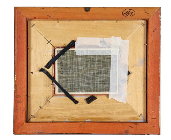 Firmato e datato 1979. "Paesaggio con case" tecnica mista su cartone cm 13 x 18