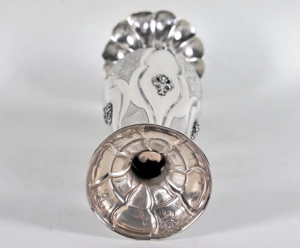 Anfora in argento cesellato e sbalzato a motivi Luigi XVI, gr. 460
