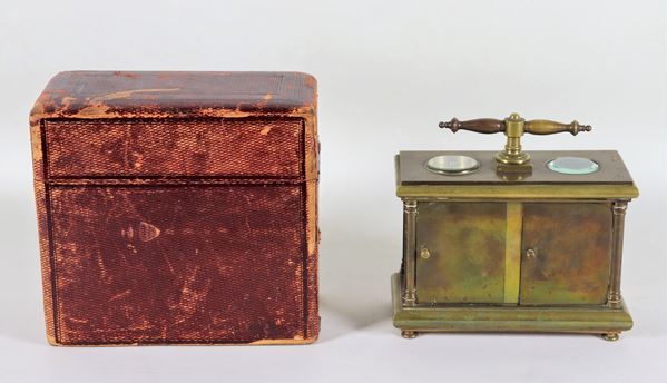 Annessa custodia originale in cuoio. Non funzionante, da revisionare, cm 18 x 8,5 x 17 h.
