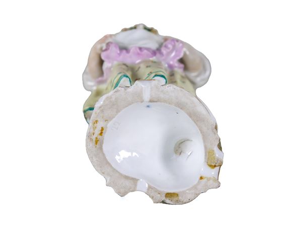 "Bambina con rose", statuina in porcellana policroma tedesca