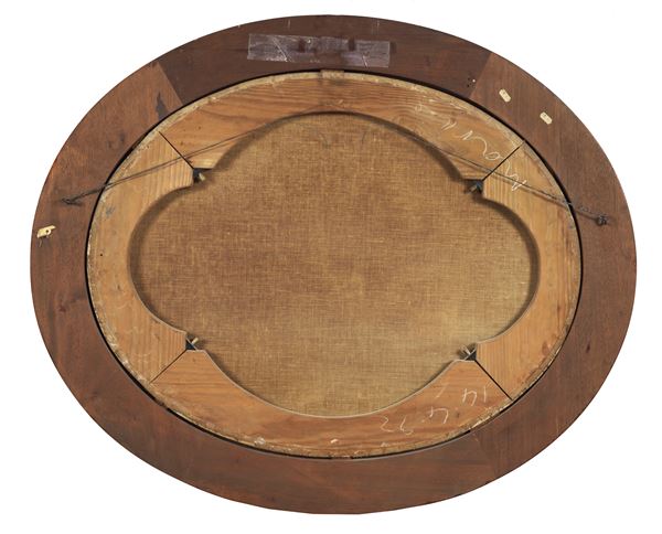 cornice in mogano intagliata, cm 73,5 x 95,3.