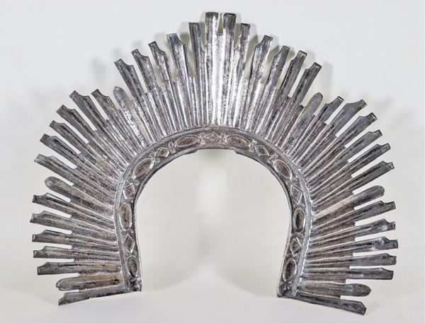 Collare da cerimonia sudamericano in metallo argentato, sbalzato e cesellato