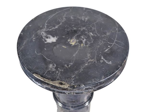 Colonna di linea neoclassica in marmo nero venato con capitelli
