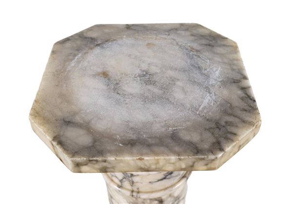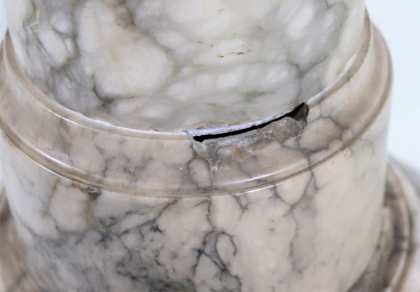 Colonna Liberty in marmo grigio venato, con terminali a capitelli