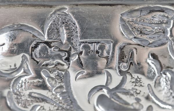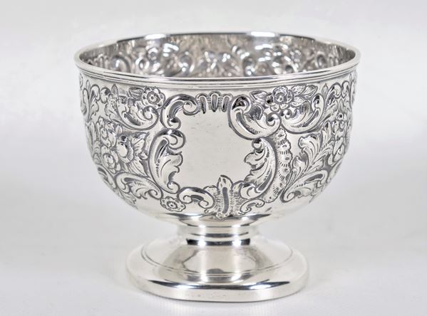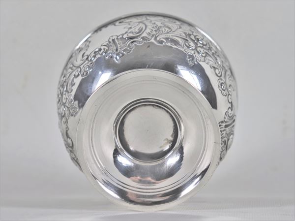 Coppa in argento Epoca Edoardo VII, cesellata e sbalzata a volute floreali e foglie d'acanto, gr. 200