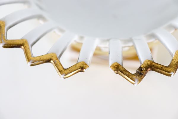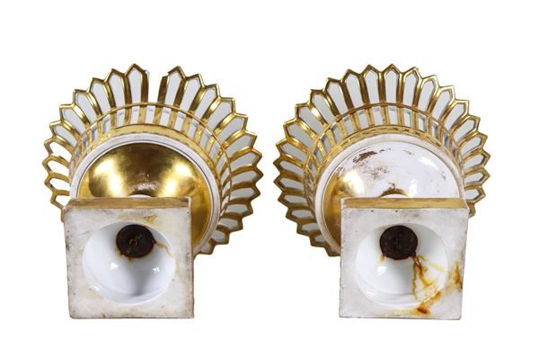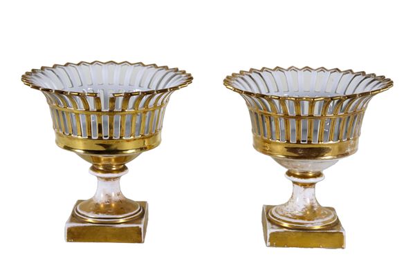 Coppia di alzate Impero a forma di cesti in porcellana bianca e oro