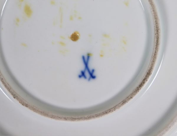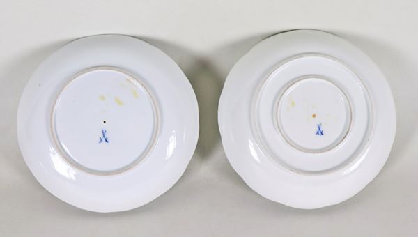 Coppia di piccole zuppiere in porcellana Meissen, con decorazioni variopinte a motivi floreali e di animali