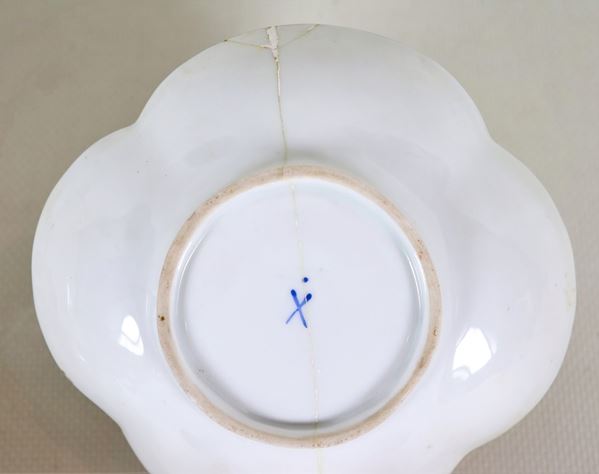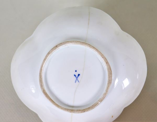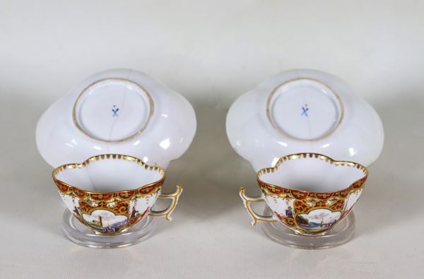 Coppia di tazzine con piattini in porcellana Meissen, con decorazioni variopinte di "Marine e paesaggi"