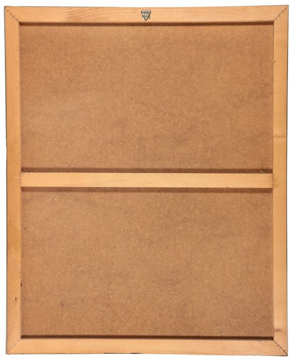 cornice in metallo dorato e passepartout rosso, cm 67 x 48.