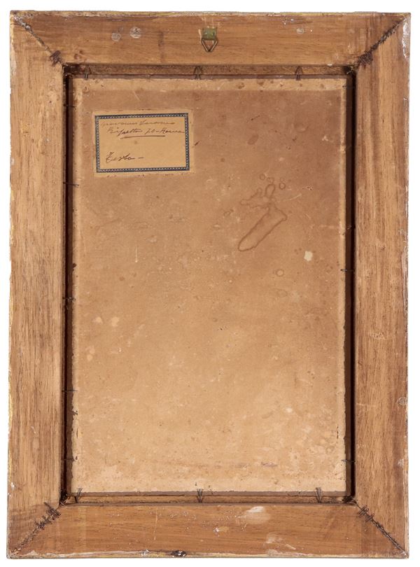 Firmato. "Ritratto di giovane uomo", piccolo dipinto ad olio su tela applicata a cartone