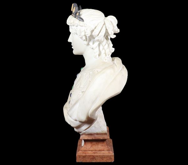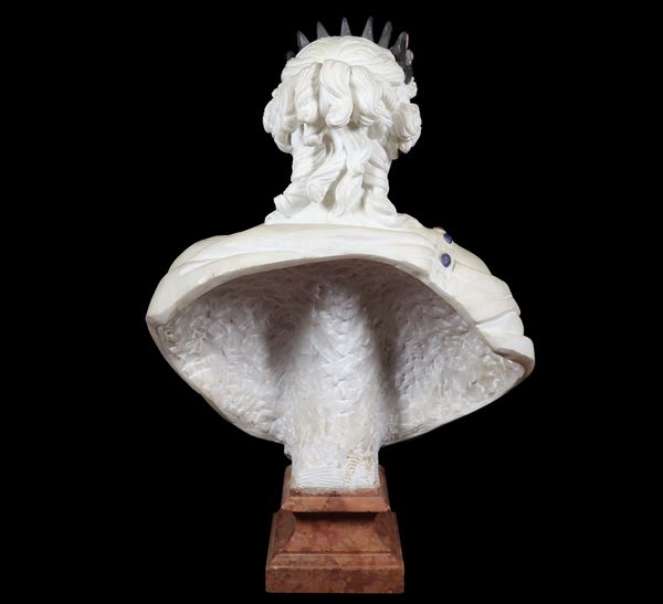 "L'Europa", busto in marmo bianco con corona e fascia perlinata in marmi policromi, base quadrangolare