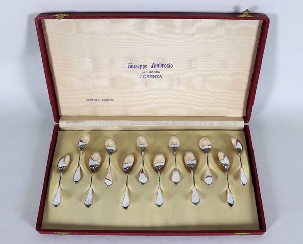 Lotto di dodici cucchiaini da caffè in argento, gr. 100