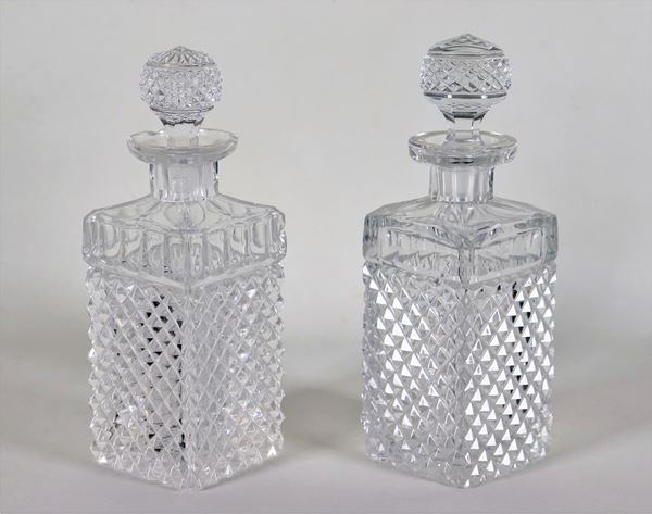 Lotto di due bottiglie quadrate da liquore in cristallo lavorato