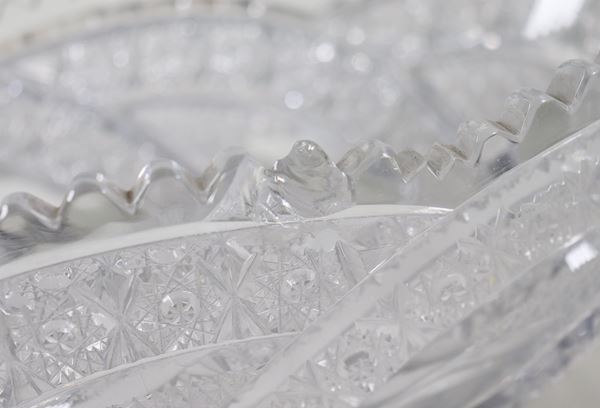 Lotto di due fruttiere in cristallo di Boemia lavorato, una tonda e una ovale