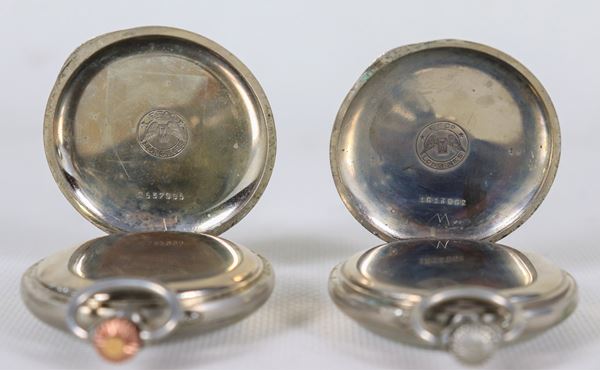 Lotto di due orologi da tasca in metallo argentato a doppia cassa