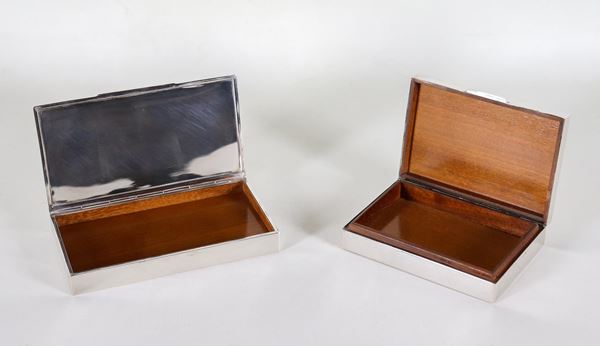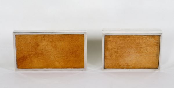 Lotto di due scatole portasigarette in legno rivestite in argento, misure diverse