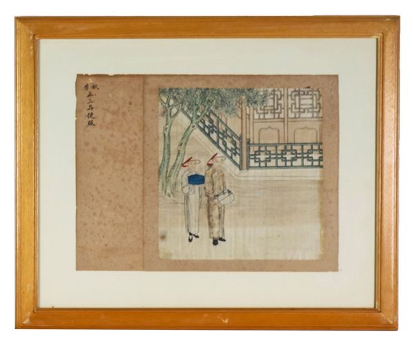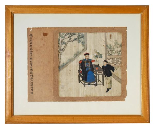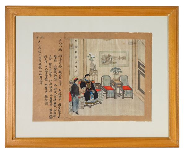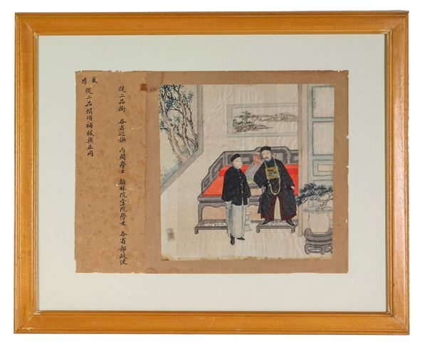 Lotto di quattro dipinti cinesi su seta "Scene di vita imperiale", con varie iscrizioni